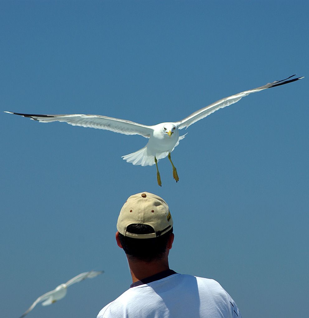 Disturba un po' l'altro gabbiano sullo sfondo. Prova a clonarlo via.