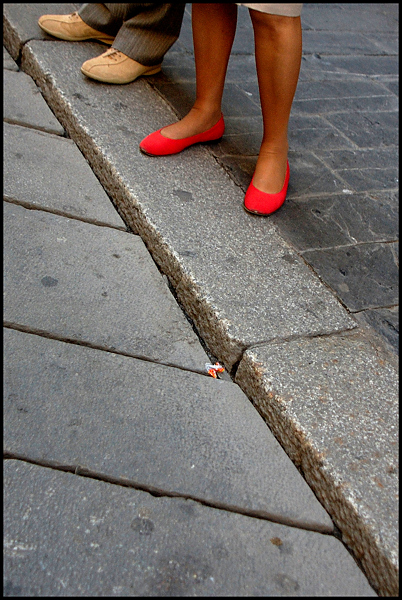Ciao Umberto... LA foto è un po' un clichè fotografico... nel senso che foto di scarpe e strada anche in questo form ne ho visto parecchie...
