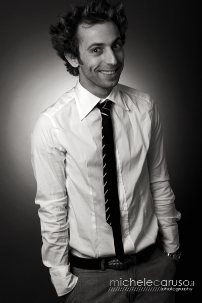 Bella posa, espressione molto simpatica, sull'illuminazione posteriore non so forse è un po' troppo chiara e rischia di confondersi con la camicia bianca sulla spalla destra.