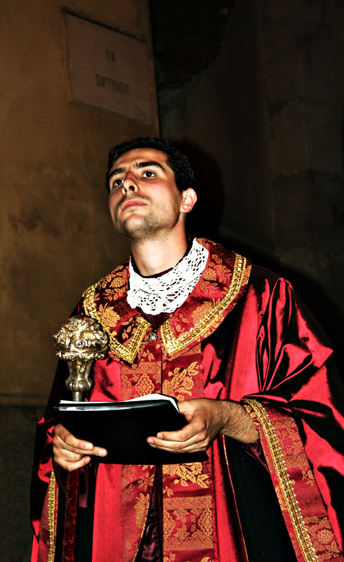 Il rosso della veste risulta ipersaturo, con effetto fosforescente.