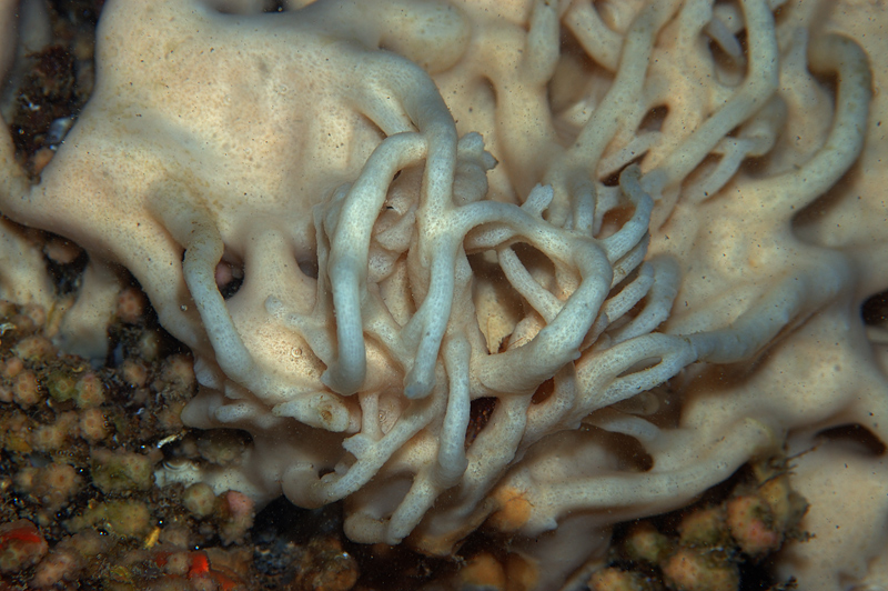Sto studiando i particolari di questa spugna, è affascinanate il fatto che non sia tra quelle più note. Ma il fatto che era a poca profondità, seppur in grotta, dovrebbe essere positivo verso il riconoscimento. Spero presto di poter dare un nome a questo splendore. Ok!