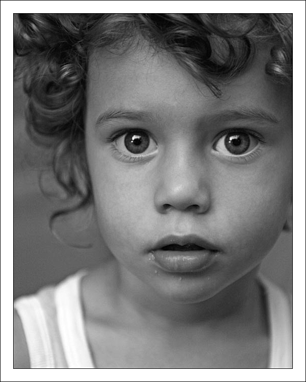 bellissimo ritratto bella e spontanea l espressione del bimbo mi piace molto il taglio ben curato anche il bw e molto bello anzi ottimo concordo con silvano un pelino di contrasto in piu