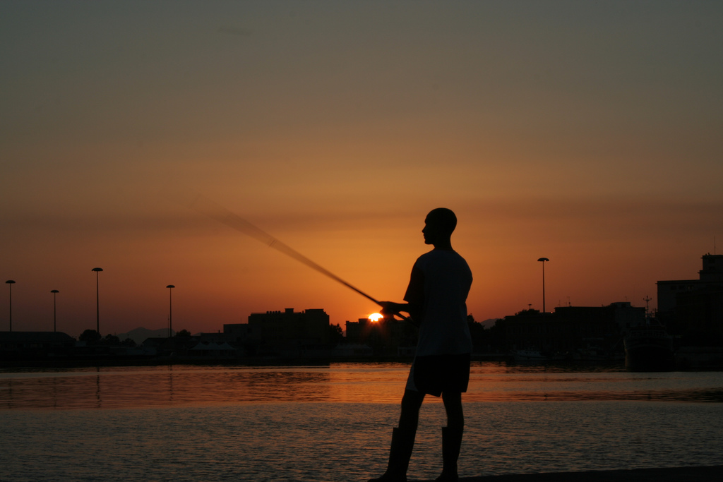porto di cagliari al tramonto...un pescatore.. |
