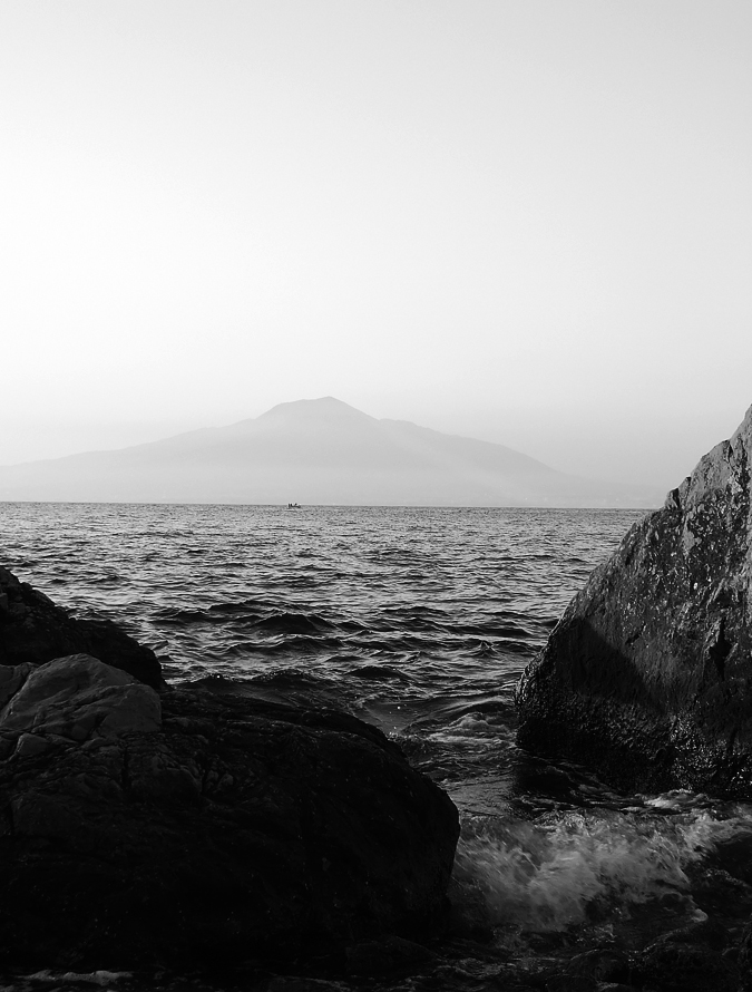 Eccola qua' .....adesso... ....lo scoglio in primo piano e' troppo scuro e oltre ad aver perso leggibilita' occupa molta superfice, schiarirei quindi i grigi scuri appena appena per vedere la trama della roccia che un po' intravedo, ultima cosa ....cornice fina fina nera