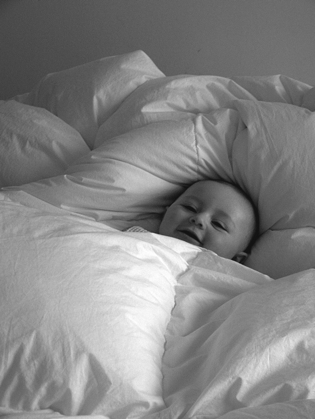 L'espressione mi piace, purtroppo il piumone chiaro ha falsato l'esposizione rendendo scuro il volto del/la pargolo/a