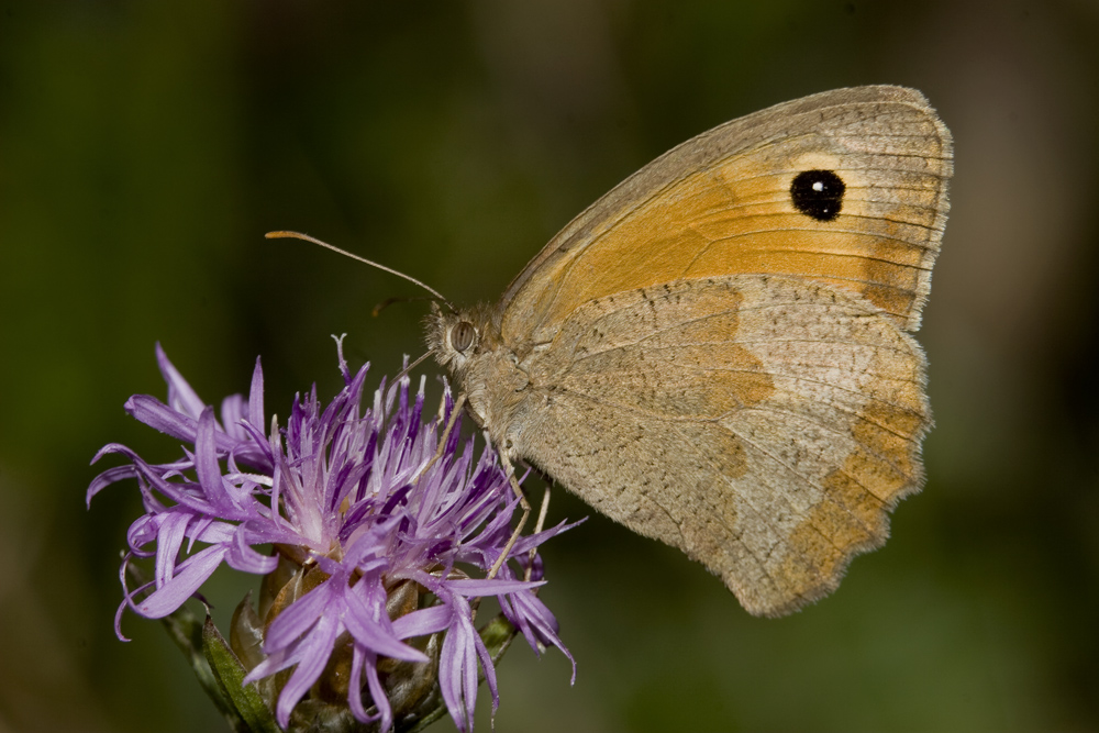 Maf precisa e bello sfondo. Ottima la nitidezza sia della farfalla sia del fiore su cui è posata Ok!