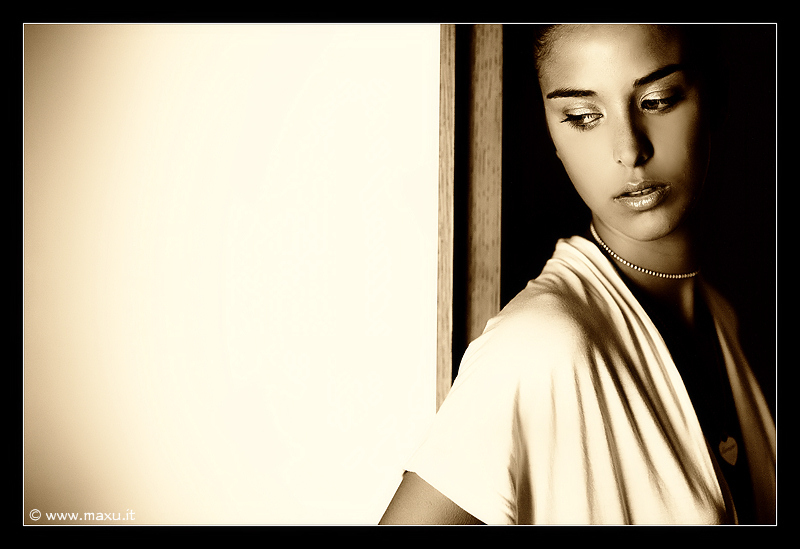 Bravo Maxu, bello scatto, soprattutto per l'ottima gestione della luce e il viraggo seppia-dorato, che uniforma lo scatto. Ottimo il taglio, con la ragazza ad occupare una zona in ombra, che la fa risaltare, e contrapposta all'altra parte illuminata da una luce simile al colore della sua stessa pelle.