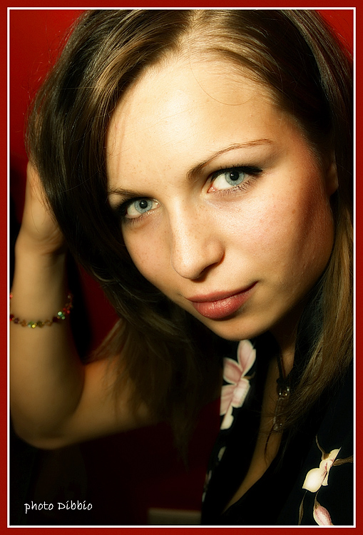 lo sfondo rosso, seppur non molto visibile dona molto alla composizione (rosso e biondo dei capelli mi piace da morire come abbinamento).