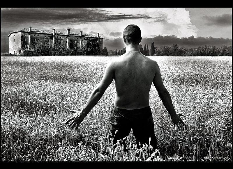 Mi viene in mente un film... dei fratelli Taviani... si chiamava La notte di S.Lorenzo... c'è una scena magnifica, onirica, forte, un sanguinoso duello di lance in mezzo al grano come una duello dell'Iliade.................questa intensa ambientazione me la richiama... non certo per i contenuti......... ma per la intensità dell'immagine e per la forza del contrasto........