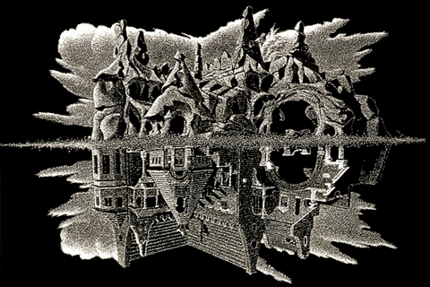 Opera di Paolo Hermann esposta presso il museo della Casetta delle Civette, Villa Torlonia, Roma
