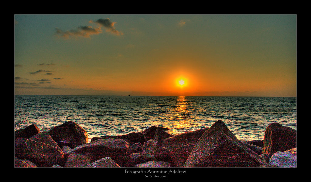 Bellissimo tramonto e belle tonalità ma come ha detto Biagio si nota molto il lavoro in PW sugli scogli in primo piano (hai esarato credo con luci/ombre) e i colori sembrano artefatti!