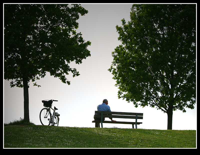 purtroppo lo scatto originale aveva il cielo bruciato.. pensavo che una vignettatura in alto avrebbe dato maggior risalto al tipo sulla panchina invitando a porre su di lui lo sguardo.