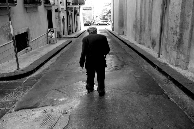 mi danno un pò fastidio le macchine sullo sfondo, ma anche a me piaceva questo confronto tra la ragazza del cartellone ed il vecchietto,