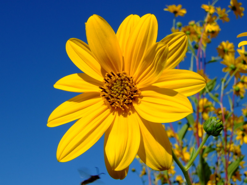 molto bello il fiore e ottimo il giallo,tutto lo sfondo a dx però disturba,interessante l'esserino che vola in basso Ok!