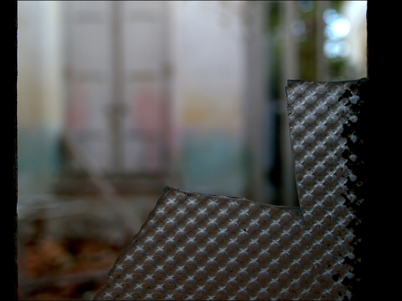 Per questa in particolare è solo un pezzo rotto di una vetrata . Quel vetro divideva le corsie dalla scala principale . Mi sono chiesto cosa avesse visto quel vetro in tutta la sua lunga vita prima che un deficente qualsiasi fosse entrato e l' avesse rotto senza nessun rispetto per quel luogo .