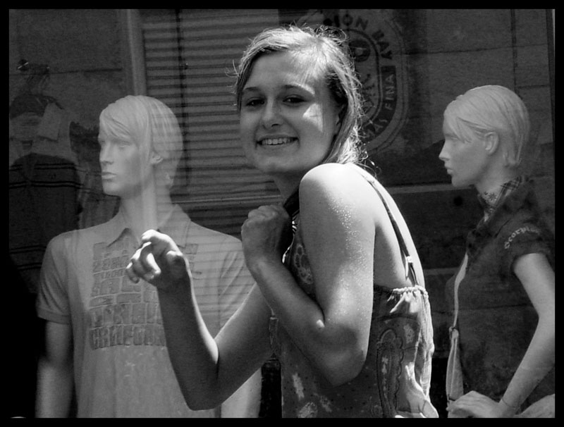 Bella la contraposizione tra i manichini inanimati senza espressione e la giovialita della ragazza, un antitesi perfetta colta con un ottimo colpo d'occhio. _________________ Il mio sito,