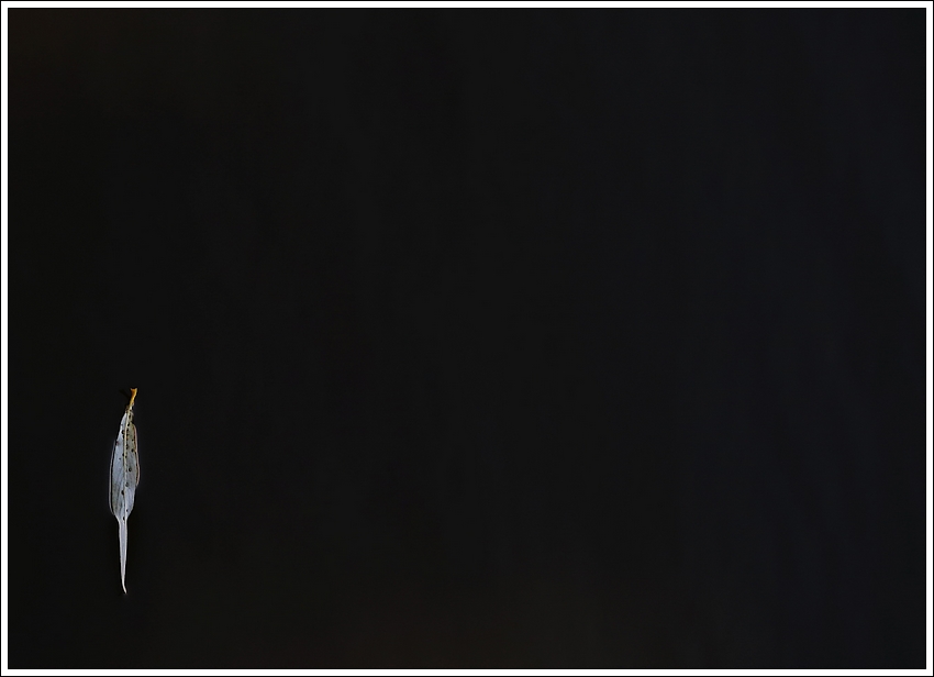 il soggetto è una foglia e lo sfondo nero è acqua, molto torbida (è così scura perchè ero in una zona totalmente all'ombra) e poi ho scurito ancora un pochino in pp