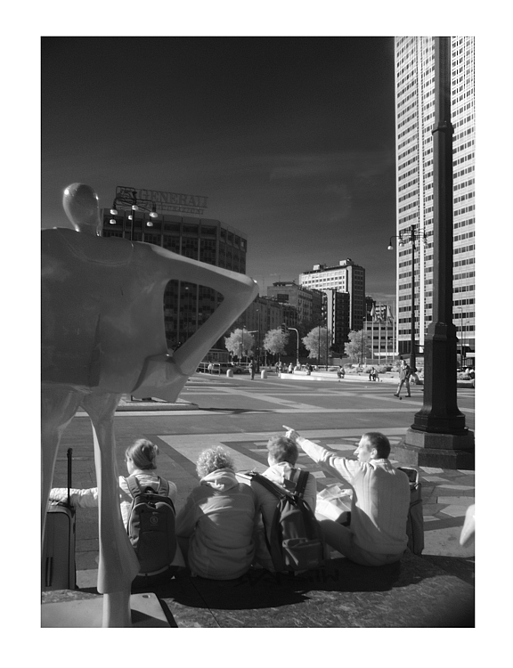 ... magari con un'inquadratura differente, avrei cercato di dare più rilievo all'alieno, che un po' per l'impianto tonale, un po' per la sovrapposizione con l'edificio resta penalizzato nell'economia della scena .(complice anche la presenza della scritta, che, come sai attira l'attenzione più di una forma "antropomorfa") ..