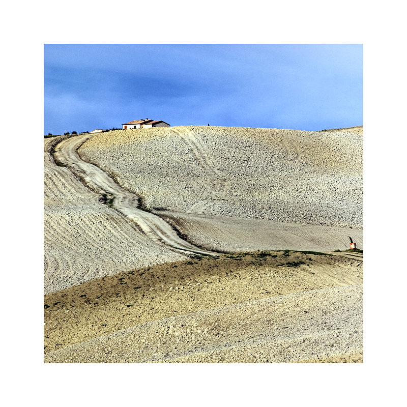 Unico appunto (IMHO): quell'aggeggio rosso a dx, (un bidone?) tende a distrarre un po' troppo: l'occhio viene guidato dalla strada fino alla casa ma poi tende a ritornare verso quella macchia colorata in basso. Personalmente l'avrei evitato, o levato in post.