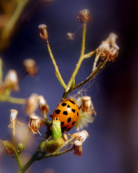 I colori sono, diciamo, passabili... ma il soggetto in se? Mi convince poco o niente ll fatto che la coccinella sia nascosta dietro al pirulo. Probabilmente sarebbe stato sufficiente spostarsi di soli 10 cm....