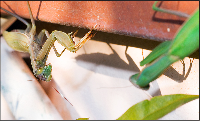 Se non era possibile avere le due mantidi a fuoco era meglio concentrarsi su una. Naturalmente resta una mia idea.