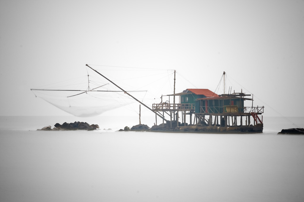 Bella foto nel suo taglio...forse un po troppo di bianco dietro la struttura che rende un po meno visibile la profondità del mare.