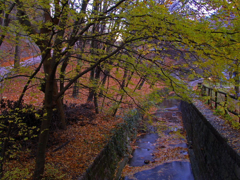 Quello che sinceramente non mi piace è l'intervento in PP riguardante il colore violaceo che si nota nel viottolo (non credo fosse quello reale), nell'acqua , nel muro e sparso nel fondo.