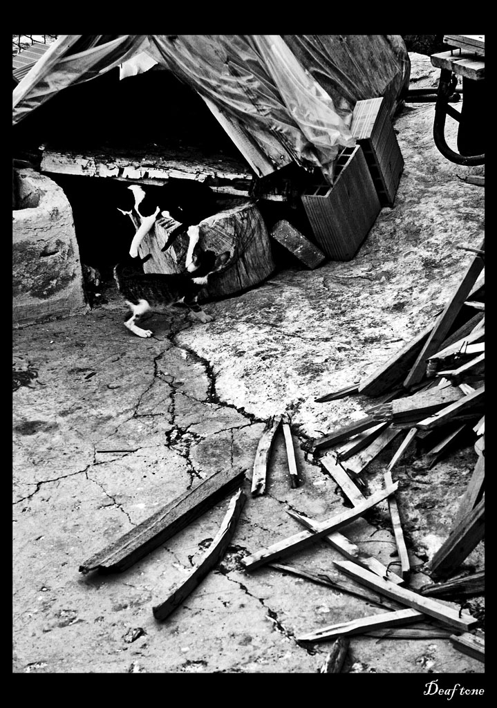molto bella questa immagine, un buon bw (trovo solo i neri un po' troppo chiusi dove ci sono i gatti), bello il taglio e la composizione dell'immagine.