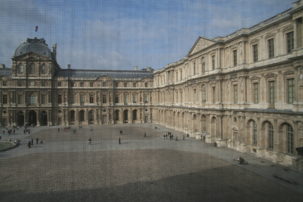 davanti alla finestra c'e' una tenda tipo zanzariera per proteggere i quadri del louvre dalla luce.