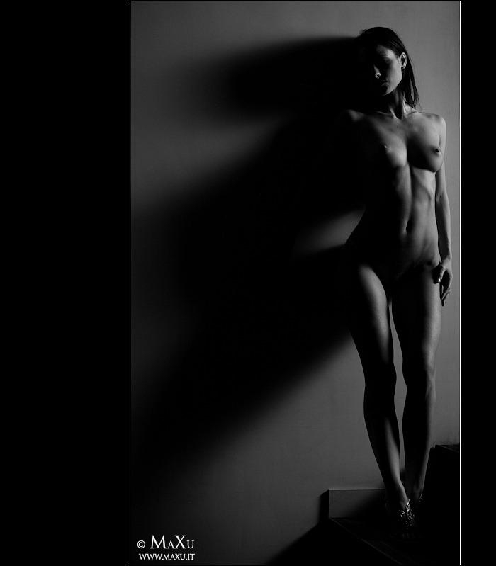 ritratto di alto livello quella luce radente accarezza il corpo e ne disegna le forme mentre le ombre nascondono il suo intimo molto bella la posa