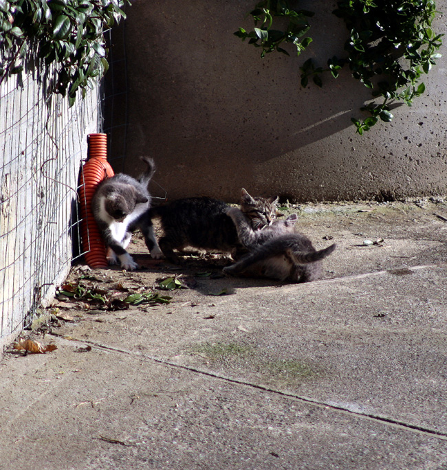 L'iperattività di questi cuccioli di felini è ben reso nel fotogramma. Mi ha fatto ricordare ceh anch'io ho degli scatti simili e dopo averli ritrovati li posterò.