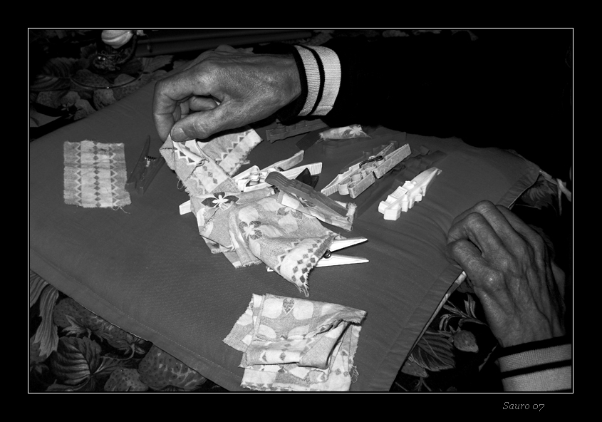 E quelle mollette mezze rotte.... e quegli stracci incomposti... e quelle mani, che non sanno come fare a cavarne qualcosa.. e li muovono di quà e di là ... ma non ne esce nulla...