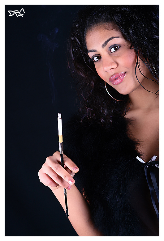 A me piace molto questo ritratto (un poco meno la posa con sigaretta, sembra innaturale, il bocchino è un po' un corpo estraneo).