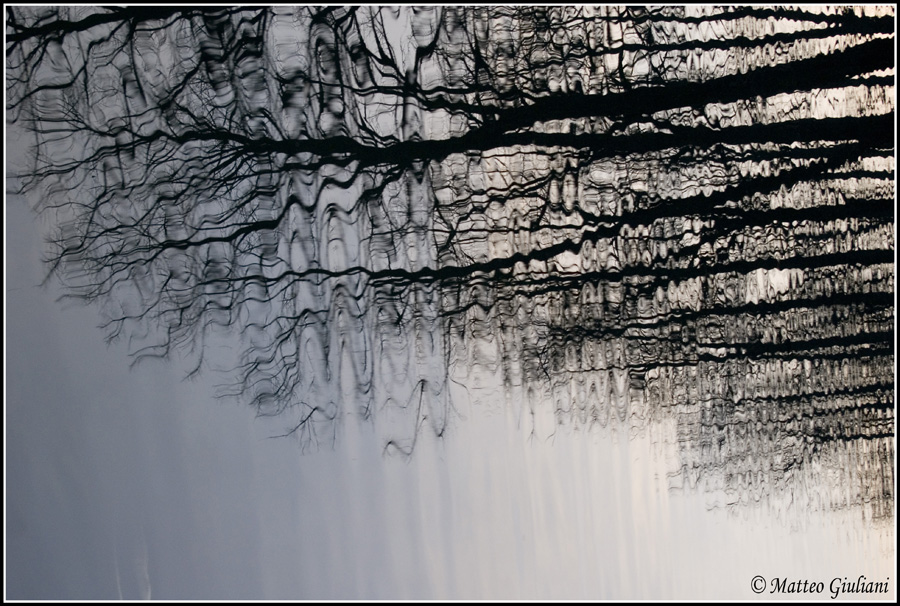 Carina l'idea (se era questa ) di trasformare i riflessi in una sorta di grafico di sismografo; in quest'ottica però avrei visto bene un taglio quadrato che eliminasse le cime dei rami per valorizzare di più la parte destra.