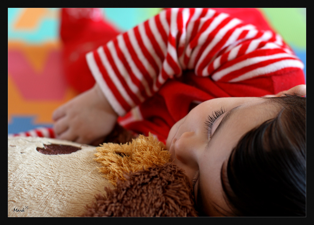 Si era addormentato mentre giocava, potevo non fargli mezzo giga di foto??? Smile