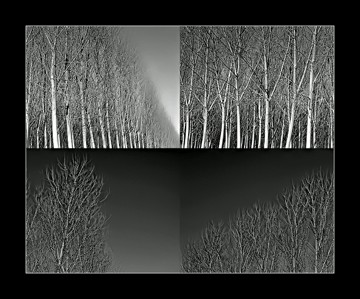Particolare la scelta di mettere sotto le cime dei pioppi e sopra i fusti !