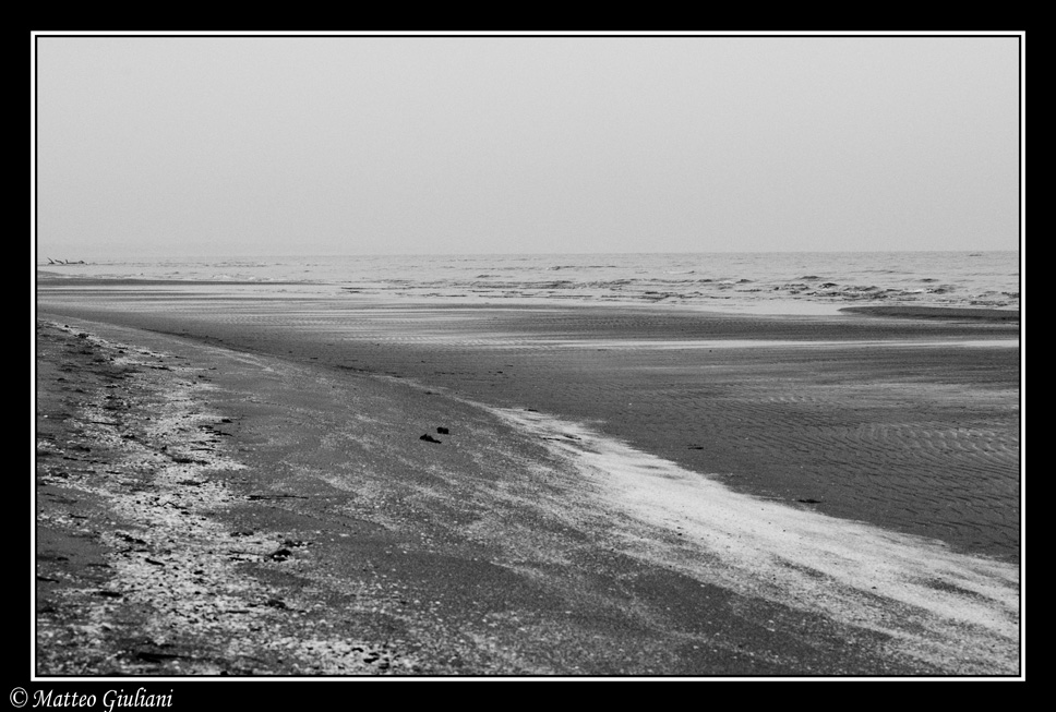 La composizione mi piace, molto essenziale e bilanciata, bella anche la semidiagnonale creata dalla sabbia bianca, avrei provato a fare in modo che "toccasse" le pozze d'acqua che si intravedono più avanti.