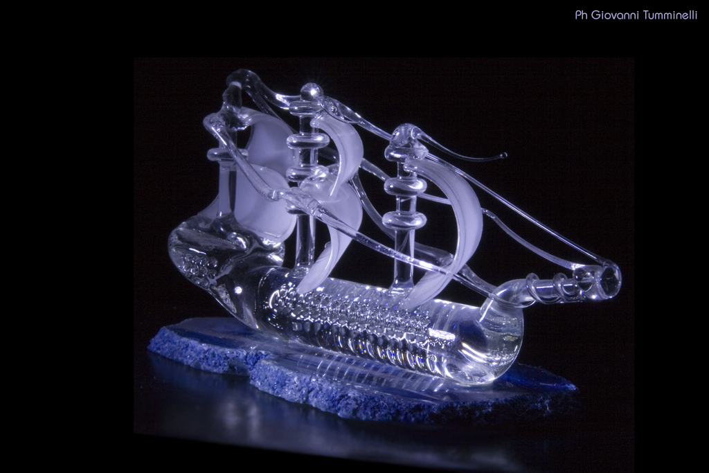 io lo sfondo lo vedo con un po di blu...................ahhh io l'avrei illuminata dallalto con una piccola luce da vedere pure il raggio sul ripiano! ciao! Ok!