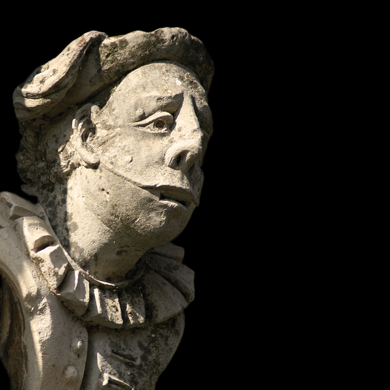 Un bell'esempio di scultura con grande forza espressiva. Questo volto dall'aria così supplichevole e preoccupata fanno pensare a un giullare che prega il regnante di non essere cacciato dal "Palazzo".