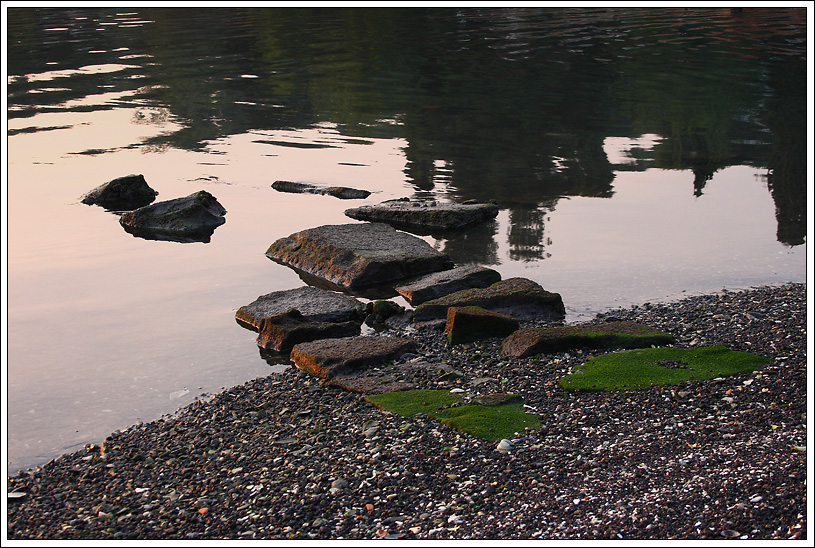 La composizione mi sembra buona, concordo sul fatto che forse avrebbe giovato che la linea dei sassi e quella dei riflessi fossero ben distinte