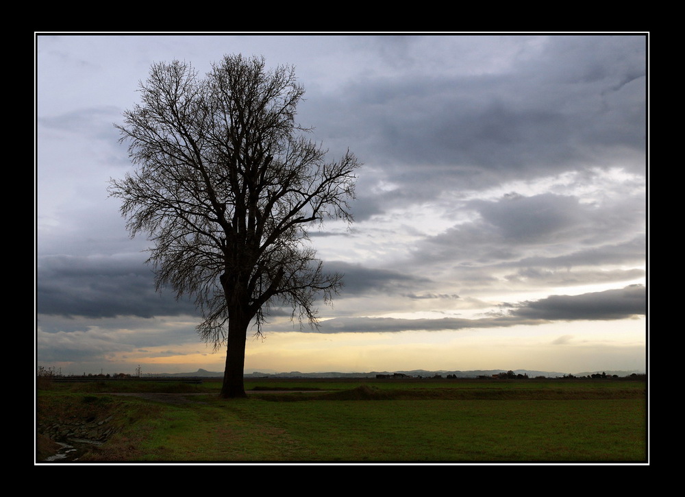 Grazie Franco L'orario in cui hai fatto lo scatto, la presenza delle nubi e l'assenza di foschia hanno reso l'immagine perfettamente equilibrata come luce e nitida. ...ieri pomeriggio c'era vento e una luce strana...due buoni motivi per uscire dalla superstrada e venire a riprendere quest'albero da vicino....confronta questa fatta in un'altro giorno uggioso e ripreso dalla piazzola della superstrada (è lo stesso albero)...