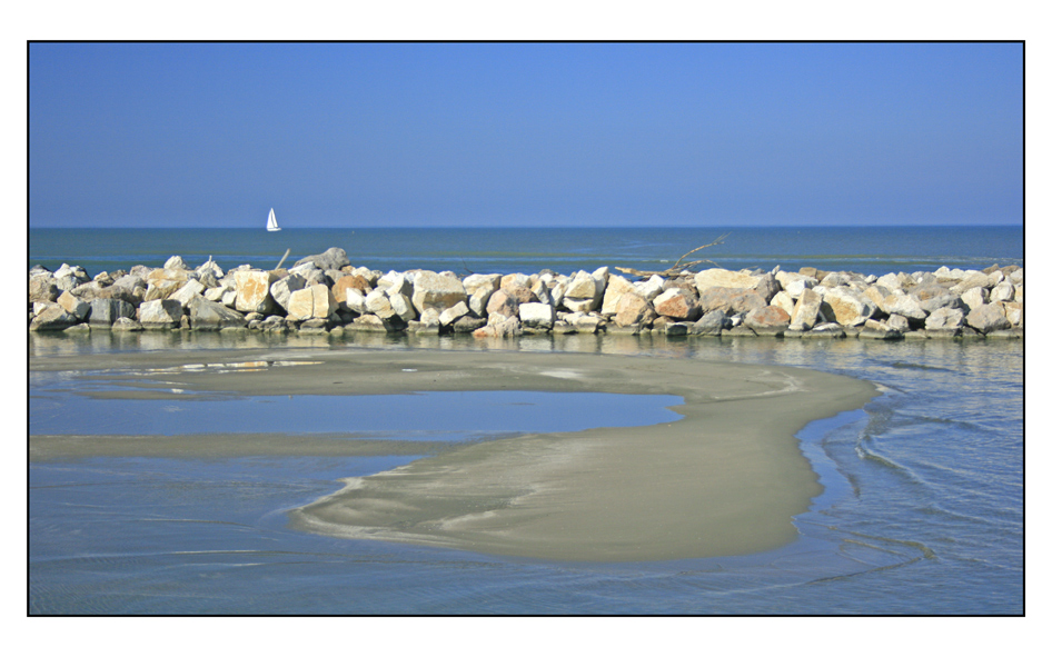 a me piace molto la composizione di questa foto con questa "macchia" di sabbia che la fa da padrona in mezzo al mare.