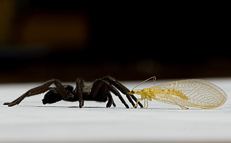 Uno sfondo bianco uniforme sarebbe stato,secondo me,migliore,forse manca un pò di nitidezza sulla testa della Chrysopa f.