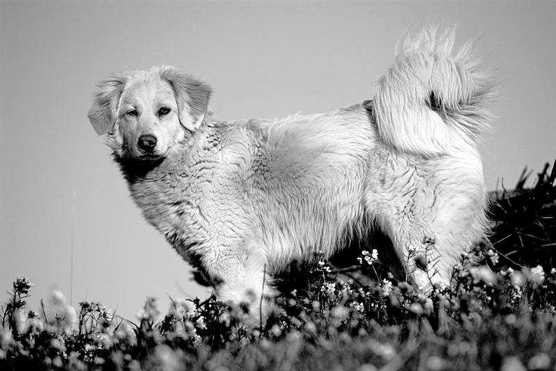 bè guarda almeno dal mio punto di vista questa foto non ha bisogno di consigli o correzioni, mi piace il b&w , e mi piace il fatto che la cagnolona non perda di "importanza" e contrasto davanti al cielo, è un chiaro su chiaro che spesso non è facile da gestire!