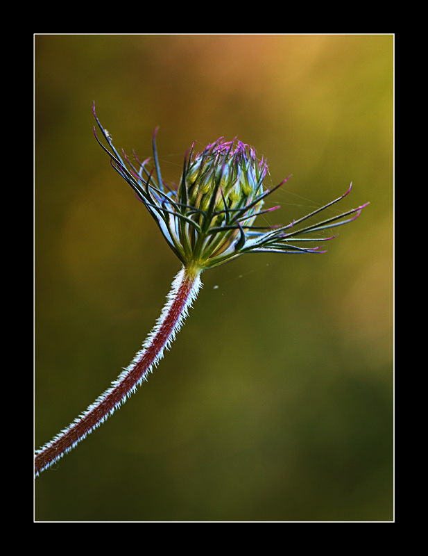 Belle le tonalità dello sfondo, gradevolissimo il controluce sullo stelo... ottima la compo e il taglioche hai dato all'immagine... la tela un po rompe sporcando l'immagine,ma mica si può avere tutto....