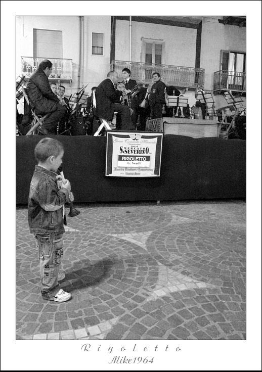 | overlook ha scritto: | | troppa luce sul manifesto ,che non è importante,interessante invece il dialogo tra i due piani dell'immagine,con il bambino musicista e i musicisti sul palco,troppo rumore sui neri,che potevi chiudere: c'è quello che si deve vedere e quello che può non vedersi in una foto secondo me. |