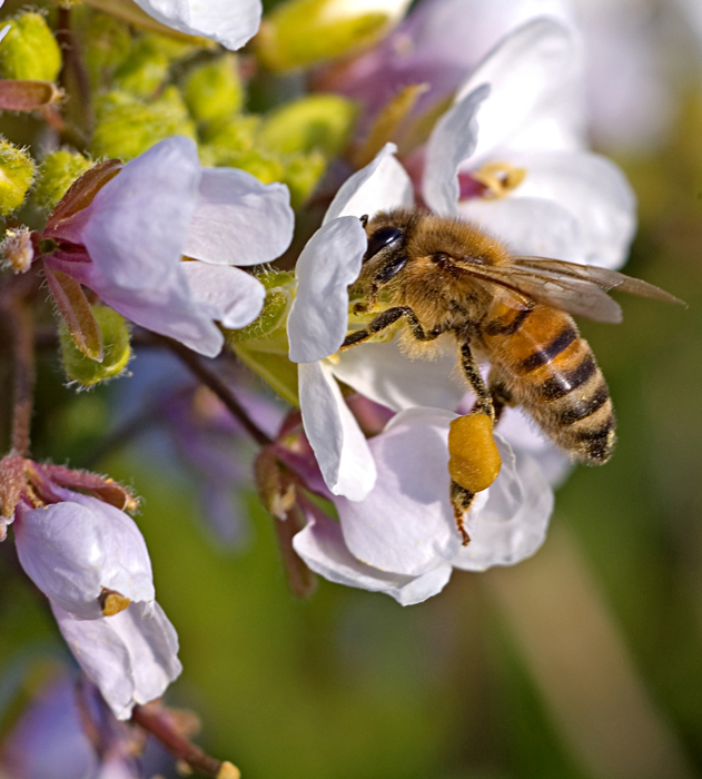 Bella macro! ben ripresi sia l'ape che i fiori!