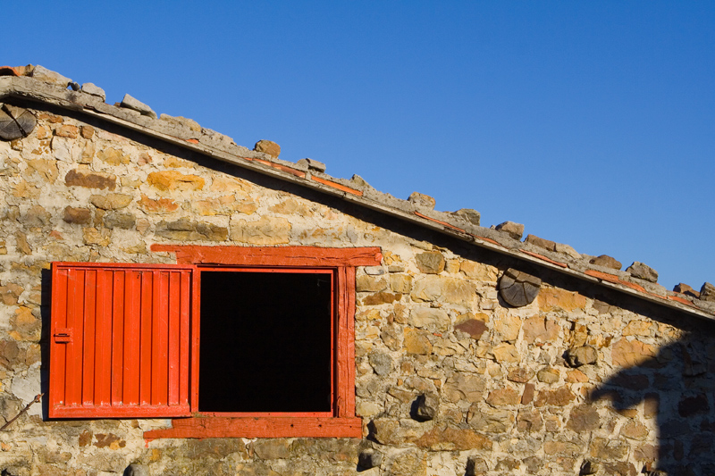 l'immagine rende molto bene per la forza e la brillantezza dei colori, soprattutto il rosso della finestra e il bel blu del cielo.. in una immagine molto pulita, in cui lo sguardo tende ad essere catturato dal nero dell'interno per poi ritornare di colpo all'esterno catturato invece dal rosso brillante..