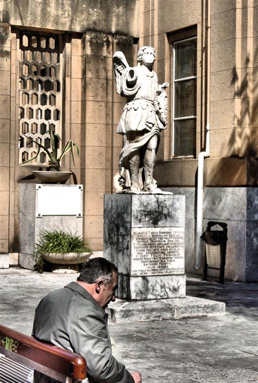 .. la compo è buona, anche se non del tutto funzionale alla storia (è mania da strettaroli cercare un'interazione tra la statua e l'omino, qui manca, ma non importa .. allora perchè lo sviluppo in verticale ? .. ok per motivi compositivi .. faccio tutto da solo, tranquilli ..).