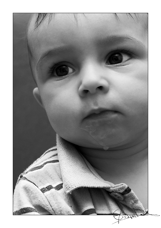 Mi piacciono molto, oltre al meraviglioso bimbo, il taglio e l'inquadratura che hai scelto, l'effetto "nasino di cera" e lo sfondo grigio neutro, un pelino scuro ma non troppo.